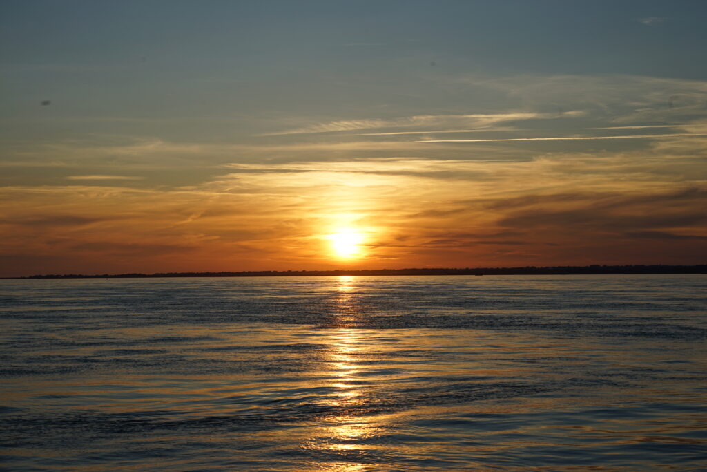 The wind was good if not a bit light, and we set off in the afternoon and tested our Gennaker on the water with perfect conditions to try it out. We even tried some unconventional setups, where we flew our Gennaker in butterfly position with the Genoa. That means that one sail flies to port (left side of the boat) and one sail to starboard (right side). With this setup, you can only sail dead downwind which is something you cannot do with your main sail up. Although we were quite slow with around 3 knots of boat speed, the Gennaker was performing very well in only 4 knots of wind. We easily won the race with all the other boats around us overtaking them all. But then the wind dropped even lower and with high water approaching the current turned against us we needed to drop our sails and turn on the motor. We really loved the Solent and it was a bit sad to leave, but as we have many unexplored waters waiting for us we sailed past the Needles for a last time.