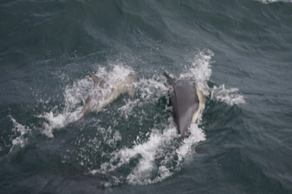Once it got dark, the wind picked up and we hoisted our sails again. We were cruising along with over 7 knots of average speed and keeping a watch in 2 hour shifts. With only 1-1.5 m of waves, we had a quite pleasant night of sailing. Arriving very tired at the mouth of Dart River the next morning we were greeted by a large pod of dolphins with loads of baby dolphins for the first time. We were quite in awe as they followed us for over 10 minutes. It was the first time we saw dolphins that close to us and it was an amazing experience that we will not forget so quickly.