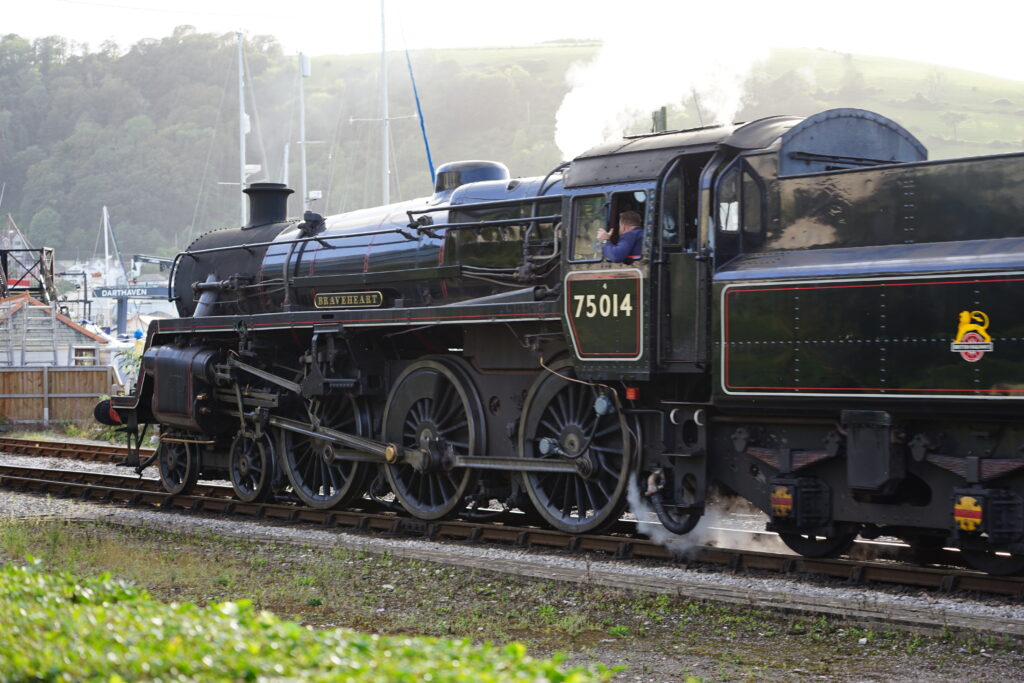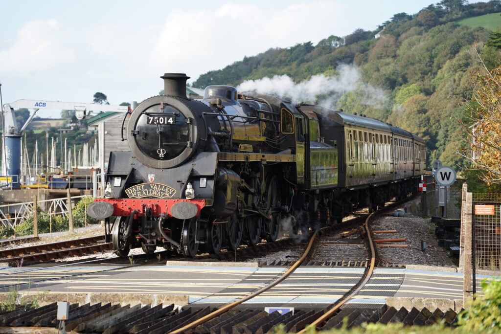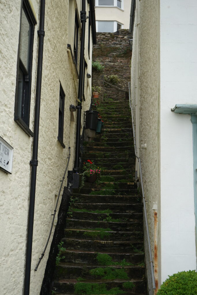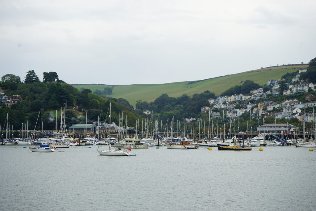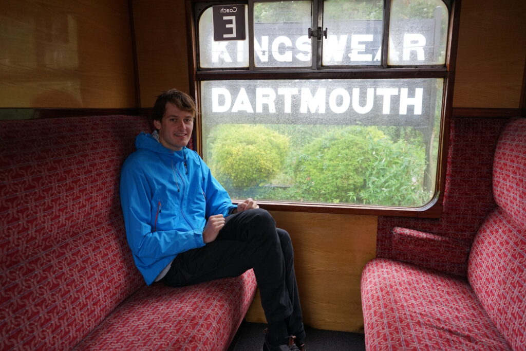 Another day we went on the old steam train of the Great Western Railway which runs between Dartmouth and Paignton. The hourly whistling as the train drove past our mooring, and the fact that we had never seen a working steam train (other than in museums), was reason enough to book a ride from Dartmouth to Paignton. The train ride was a great experience! They had to take off the locomotive at the station and bring it to the other end of the train, shovel the coal and fill the locomotive with water. The carriages were all still from the time the railway was in normal use with old compartments, we really felt like we were on our way to Hogwarts on the Hogwarts Express. From Paignton, we took a bus to Totnes, which is another beautiful little town (similar but in our opinion not quite as nice as Dartmouth). Our favourite place there was the amazing East Gate Bookshop where we equipped ourselves with some more readings for our crossings.