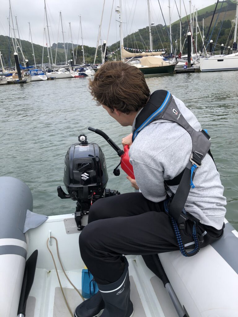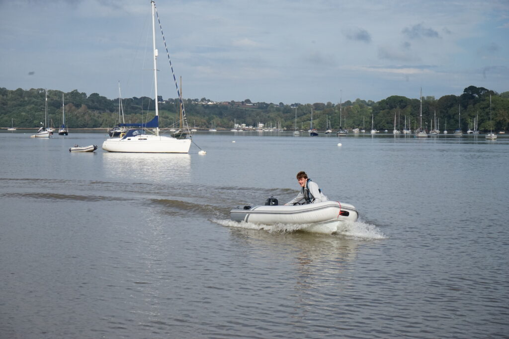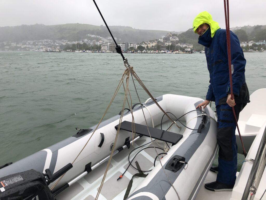 One day we took our dinghy for a test drive and went upstream to Dittisham, a small village where we found a very cosy pub for lunch. On the way back we ran out of fuel, but thinking this might happen we luckily brought a canister of petrol. Drifting quickly in the strong tidal streams we refuelled our outboard and it started again before we crashed into any other moored yachts.